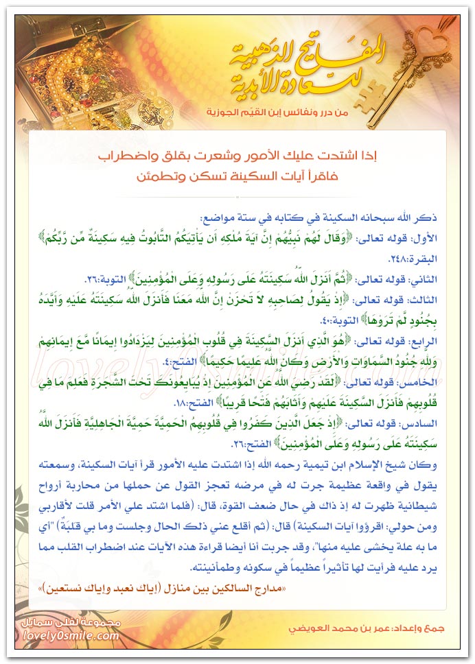 إذا اشتدت عليك الأمور وشعرت بقلق فاقرأ آيات السكينة كنز من ثلاثة أحرف لفلي سمايل