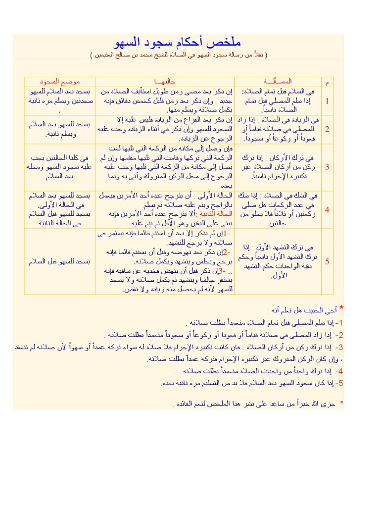 ملخص أحكام سجود السهو