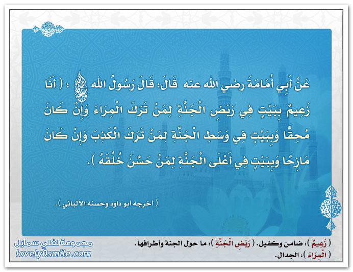أنا زعيم بيت في ربض الجنة لمن ترك المراء وإن كان محقا وبيت في وسط الجنة لمن ترك لفلي سمايل