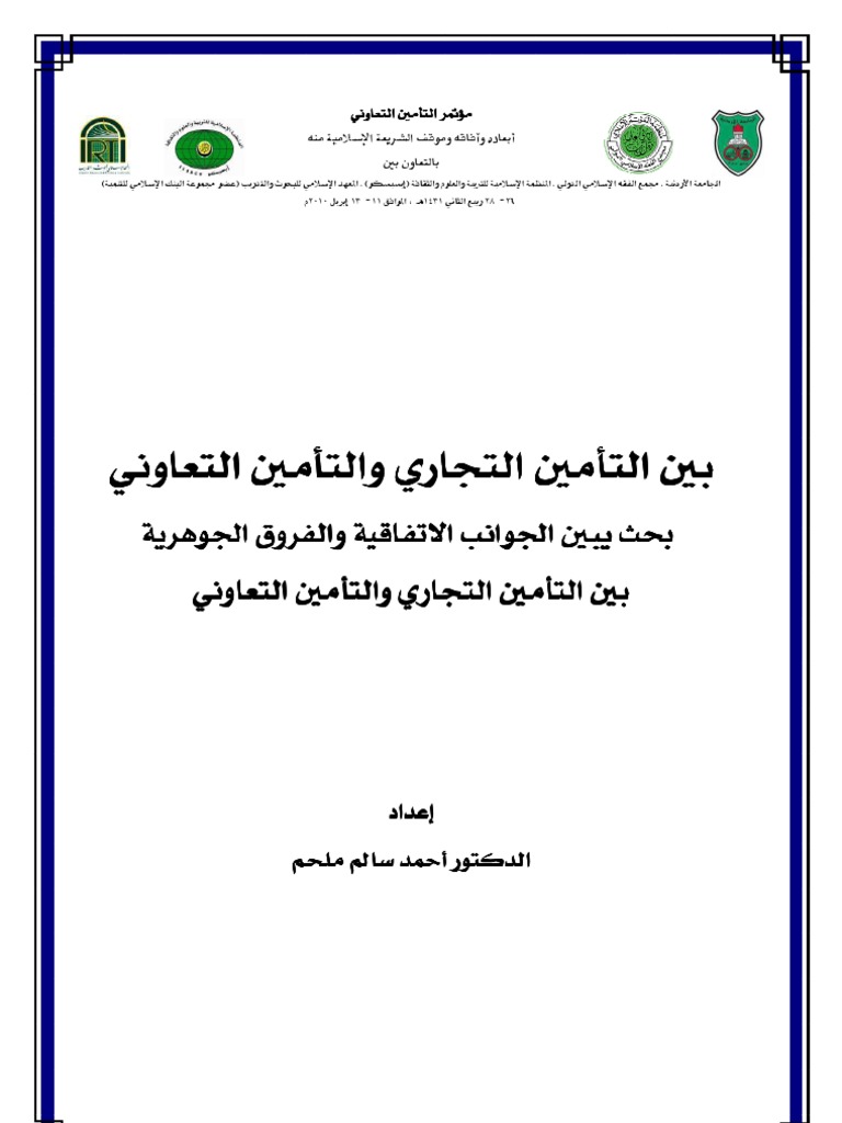 بين التأمين التجاري والتأمين التعاوني الجوانب الاتفاقية والفروق الجوهرية د أحمد سالم ملحم