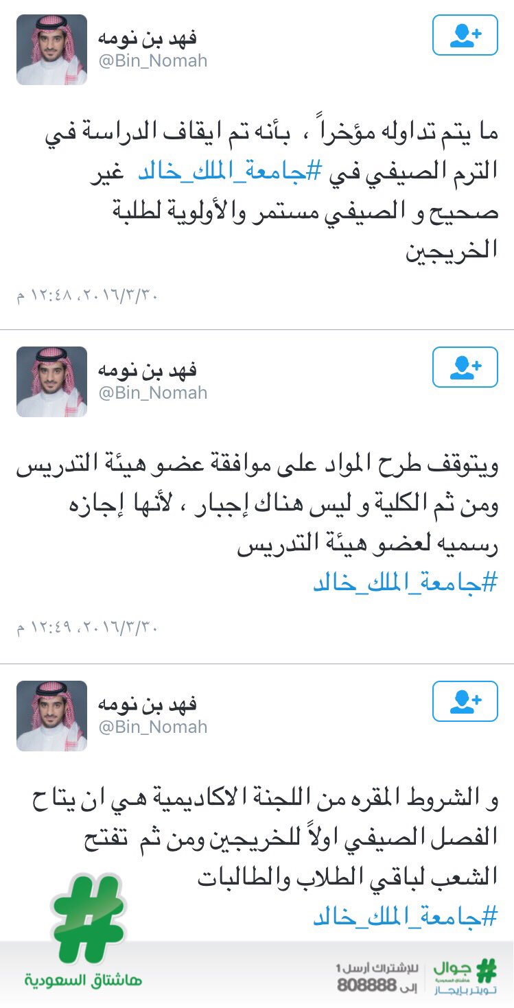 هاشتاق السعودية On Twitter متحدث جامعة الملك خالد ينفي إلغاء الفصل الصيفي مؤكدا أن الأولوية للخريجين ومنبها لشروط وضوابط تعمل بها الجامعة Https T Co Ik9numsyok