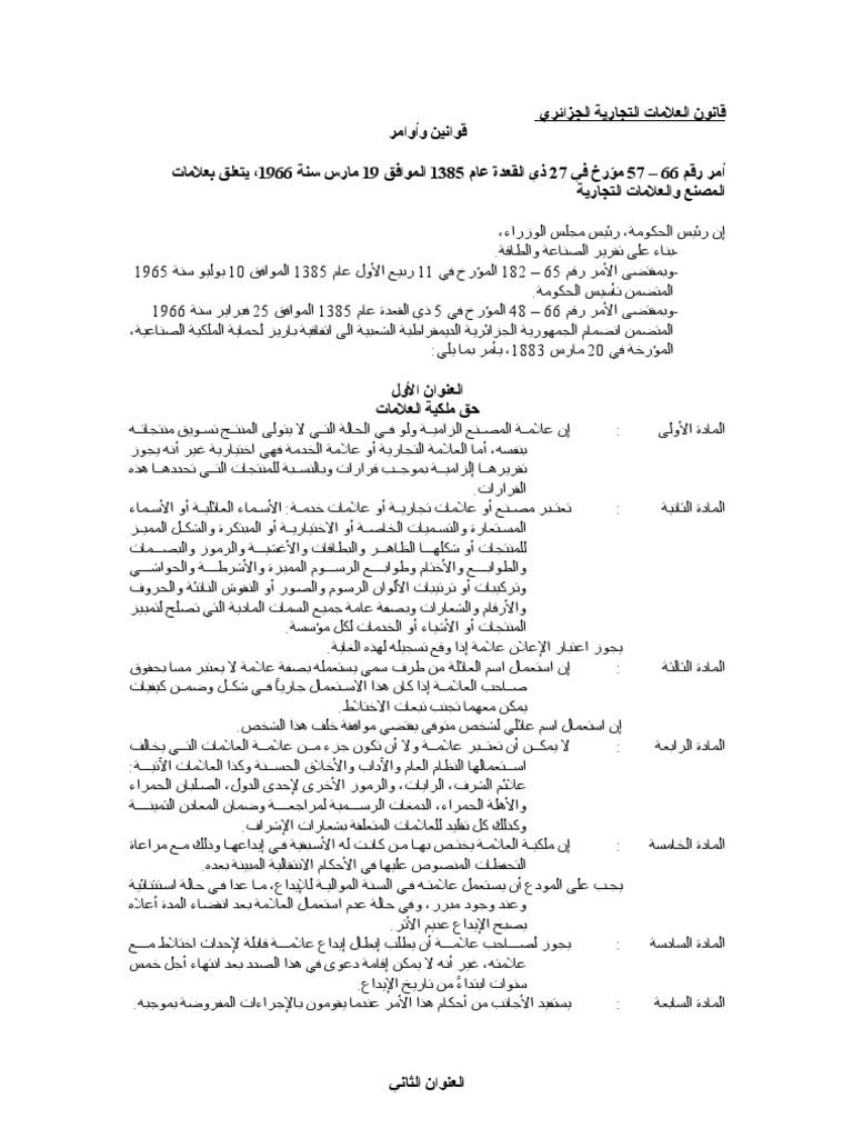 نصوص و مواد قانون حماية العلامة التجارية في الجزائر استشارات قانونية مجانية